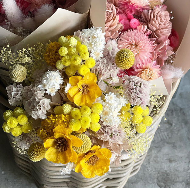 その季節に一番きれいなお花を紡ぐことをモットーにしておりますが、お色やお花の種類などお客様のリクエストがあればできる限りお応えいたします。